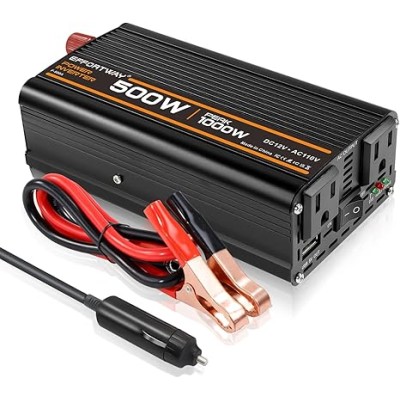500W Power Inverter, Inverter 12V to 110V with 2 AC Outlets, 2.1A USB Port
